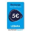 | Recharge Lebara 5€ | 5€ | 5€ de crédit de communication pour appeler en France et à l'international, envoyer des SMS et surfer su internet | 90 jours |